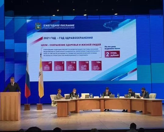 Выступление началось с обзора ситуации с коронавирусом. Глава края отметил, что прививку от COVID-19 сделали более 250 тысяч ставропольцев. Охват вакцинацией необходимо расширять для формирования коллективного иммунитета против коронавируса. Для этого на Ставрополье уже к осени прививку должны сделать около 1,3 млн человек. В крае развернули 103 стационарных прививочных пункта, ежедневно работают 113 мобильных бригад. — Общая сумма, перечисленная медицинским работникам и членам их семей в прошлом и в этом году, составила 1,2 миллиарда рублей. Их получили 1176 работников здравоохранения и выплаты продолжаются. Вложения в развитие этой отрасли в СК составят в 2021 г. 5,6 млрд руб.