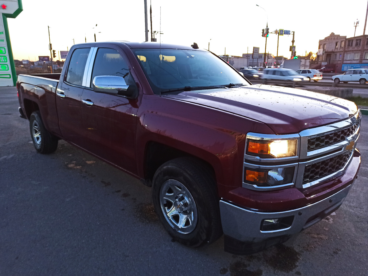 Итак, настала очередь поговорить про американские пикапы. А именно про Chevrolet SILVERADO 1500, 02.2014 г.в. (то есть рестайлинговая модель), оснащенный новым V-образным двигателем EcoTec3 V6 4300сс.(285л.с.), АКПП шестиступенчатая, привод – задний, что для пикапа в России скорее исключение, чем правило. Рестайлинг 2014 года кроме нового двигателя, улучшенной аэродинамики, мультимедиа-системы MyLink, электроусилителя руля и усиленной рамы принес пикапу новые дисковые тормоза Duralife с увеличенным сроком службы. Интересно то, что 6-ти цилиндровый двигатель этого пикапа умеет плавно переключаться в четырехцилиндровый режим при небольших нагрузках для повышения эффективности и снижения расхода топлива. Как и у многих пикапов из США огромный подлокотник водителя можно сложить, получив на переднем ряду дополнительное пассажирской место, итоговая вместимость при этом водитель + 5 пассажиров. Интересный факт, в 2014 году в США было продано 529 755 таких автомобилей, это больше, чем ВСЕ(!)