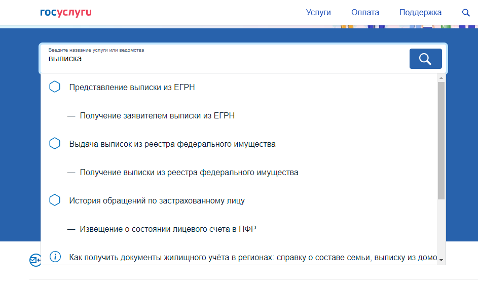 Госуслуги не дают возможность напрямую заказать выписку ЕГРН. Госуслуги работают как большой агрегатор, где вы можете выбрать необходимый для обращения орган власти – начиная от ПФР и МЧС и заканчивая Росреестром.