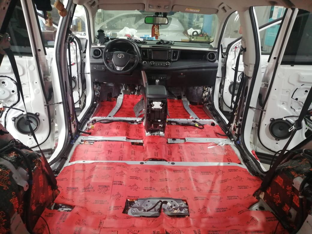 Эту модель Тойоты специально разрабатывали для активного отдыха. Автомобиль хорош и в городе, но именно на отдыхе он позволяет оторваться по полной. Закончив дела, так хочется включить скорость и музыку! Тем более, что владелец автомобиля и его друзья ребята молодые и энергичные. Музыку они любят хоть и громкую, но с чистым звучанием. А с этим то и проблемы. Были. Автомобиль со временем начинает дребезжать и поскрипывать. Это происходит с машиной любого бренда, просто от нагрузок. Наслаждаться качественной музыкой из крутой аудиосистемы шум мешает. Но проблему можно решить. Достаточно просто установить шумоизоляцию на автомобиль. Чем больше зона покрытия, тем комфортнее езда. В центре СтопУгон используют звукоизоляционное покрытие от компании Comfort Mat. Материалы соответствуют техническим требованиям, а еще: