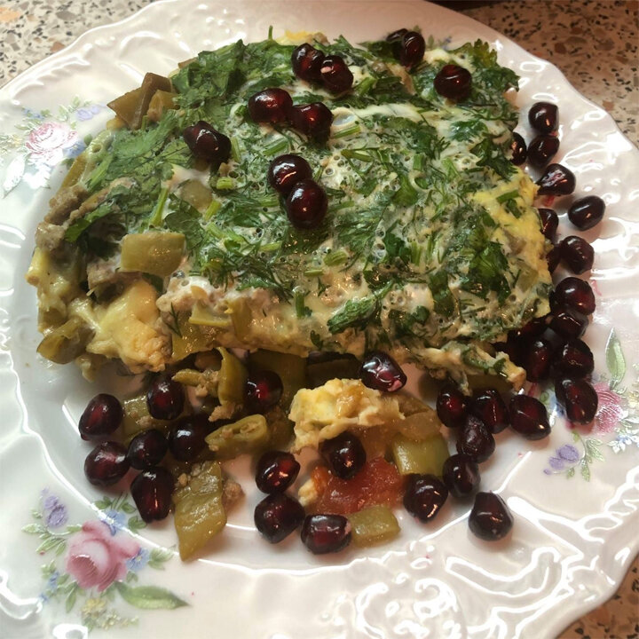 ✓ Гранатовые зерна для посыпки, но можно и без них. Мелко нарезаю стручковую фасоль, промываю, и в сковороде под закрытой крышкой тушу (масло - оливковое). Добавляю 1-2 мелко нарезанные помидорки и уже подготовленный фарш мясной. В самом конце 2 яйца взбиваю с зеленью, поливаю всю поверхность блюда, и накрываю крышкой. Всё готовлю на маленьком огне. При подаче такого блюда хорошо смешать катык (или сметану, или греческий йогурт) с чесноком отдельно, и добавить сверху к блюду, или посыпать гранатовыми зернами. Здоровья Вам! Больше общения и рецептов - в группе "Жизнь с диабетом" в Facebook и одноимённом Telegram-канале! Рецепт на странице в Facebook Автор рецепта - Егана Кашкай