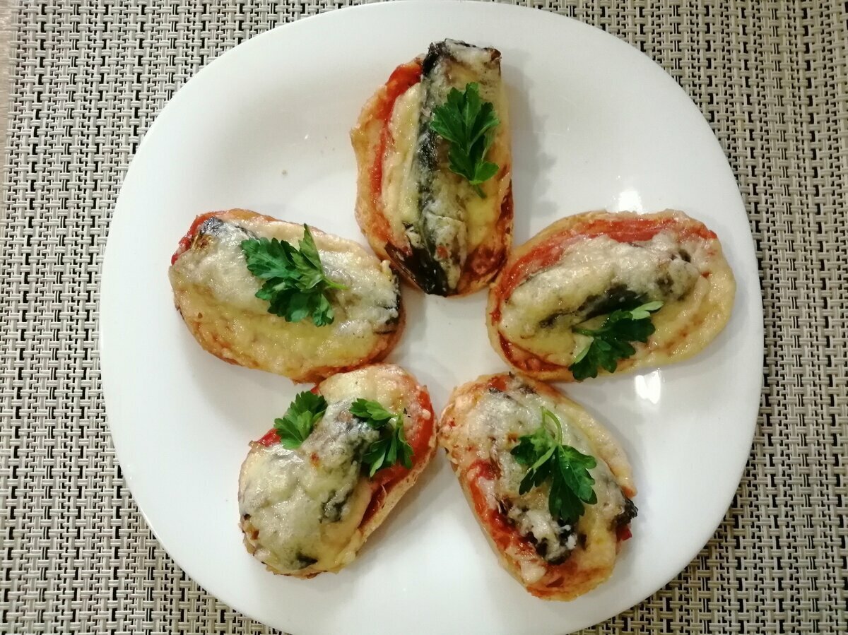 Всем большой привет! Сегодня для вас подготовила небольшую подборку бутербродов на праздничный стол, для большой компании друзей, просто на пикник и как перекус. Горячие, необычные и очень аппетитные... Попробуйте приготовить! "ГОРЯЧИЕ БУТЕРБРОДЫ СО ШПРОТАМИ" Рецепт: Батон - 7 - 8 ломтиков Шпроты - 1 банка Помидоры - 1 - 2 шт. Отварные яйца - 3 шт. Кетчуп - 2 - 3 ст.л. Сыр - 100 гр. ПРИГОТОВЛЕНИЕ: Батон нарезаю на ломтики Беру каждый кусочек и смазываю кетчупом Помидор 1 шт. нарезаю кружками Положу сверху батона Открываю банку шпрот и сливаю жидкость Беру пару шпротин, в зависимости от размеров Как в моем случае :)(кладем тогда 2 шт.) Кладу сверху помидора Отварные яйца 3 шт. нарезаю кружочками Кладу сверху на рыбку Далее сыр 100 гр. натираю на мелкой терке и посыпаю сверху Готовые бутерброды выкладываю на противень с застеленной бумагой для выпечки Выпекаю в разогретой духовке при 190 градусах 10 минут (до золотистого цвета). Бутерброды готовы....Хрустящие с сырной корочкой сверху и с