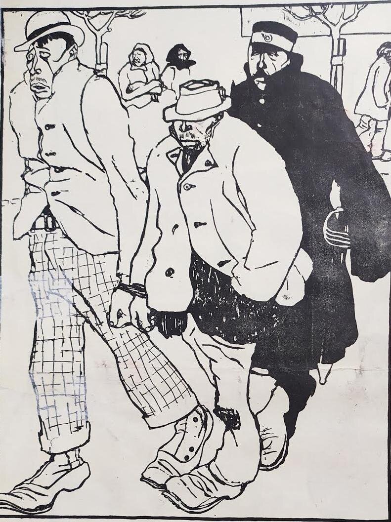 Пристав заскрежетал зубами и отвернулся. Экипаж свернул в какой-то глухой переулок. Пристав искоса оглянувшись на преступника, вдруг выскочил из экипажа и шмыгнул в сторону, в густой мокрый сумрак. Он спрятался за телефонный столб и долго, со злорадством, смотрел вслед выскочившей вдогонку за ним долговязой фигуре, которая, спотыкаясь, зашагала по тротуару, тщетно озираясь по сторонам.