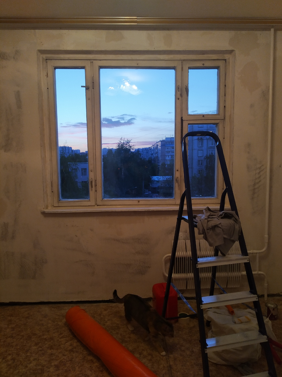 Около 11 утра пришёл мастер Алексей, оглядел нашу комнату и... не стал высказывать никаких замечаний, как-то очень быстро и легко понял поставленную задачу и приступил к работе. К 15 часам старые обои были сняты, стены и окно обработаны, батарея покрашена.