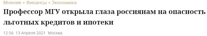 Уже неоднократно высокопоставленные чиновники вплоть до главы ЦБ старались убедить нас, что льготная ипотека - это плохо и пора с ней завязывать. Недавно вышла еще одна интересная статья, растиражированная СМИ с вот таким звучным заголовком: Профессор МГУ, доктор экономических наук Елена Ведута эмоционально утверждает, что льготные кредиты и государственные программы поддержки ипотечных заемщиков наносят только вред как самим заемщикам, так и стране в целом! Профессор МГУ считает, что льготные клиенты берет "элита", заинтересованная в кризисе, которая спит и видит, как бы помешать антикризисным планам заботливого правительства. Ну а выгодны они только банкам и крупному бизнесу, но никак не людям. Ну и, конечно же, как это часто бывает, во всем виноват Запад. В общем, смотрите сами, это небольшой отрывок из ее интервью: После таких слов, честно говоря, глаза не только открываются, как указано в заголовке новости, но и округляются. Я уже представляю, как простые граждане, начитавшись так