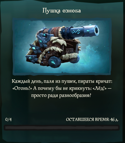 Плюсы данного скина В игре много разных скинов на ваши пушки, но самым удобным скином по мнению многих людей, является пушка озноба, которая удобна во всём. Данная пушка является маленькой и благодаря этому можно видеть траекторию вашего снаряда и понятия физики ядра, вы сможете быстро понять, как попадать с неё в вашего врага. Следующий пункт удобства в ней является то, что на конце пушки имеется маленький камень, являющийся мушкой на данном скине. Исходя из всех пунктов мы получаем лучший скин в данной игре. Способ получения Для получения, вам надо будет потрудиться и для удобства надо иметь друга, в соло будет немного сложно. Чтобы её получить, вам надо будет обзавестись черепом пепельных ветров, его можно получить в форте фортуны или победив боса пепельного лорда, который появляется во время ивента торнадо. Действия для получения И так, получив череп, вам нужно будет найти корабли скелетов, подплыв к ним вам придётся попасть на их палубу с черепом в руках и с помощью него под