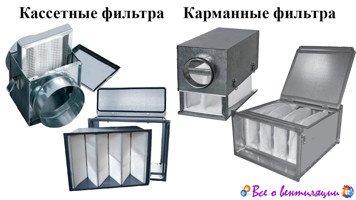 Воздушные фильтры имеют большое значение в работе вентиляционной системы. Их основная задача – очищать поступающий воздух от грязи и пыли, а также от бактерий и аллергенов. Также фильтра используют и вытяжной системы вентиляции, чтобы предотвратить выброс вредных веществ в атмосферу. и очищать вытяжной воздух на выходе из системы наружу. От фильтров зависит не только чистота воздуха, которым дышит человек в помещении, но и эффективность работы системы вентиляции в целом и зашита отдельных элементов системы вентиляции от засорения. Конструкция По форме фильтры могут быть круглыми и прямоугольными. Чаще всего в системах вентиляции используют карманные и кассетные фильтры. Фильтры состоят из корпуса и съемной кассеты. Короб фильтра монтируется в вентиляционную систему, а сменные фильтрующие кассеты, при загрязнении подлежат замене. Для того, чтобы смена кассет фильтра была легко осуществима, в корпусе имеется крышка на защелках. Для