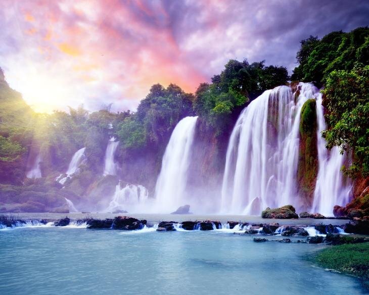 Про самый красивый водопад, мы с вами, даже поговорили отдельно тут. Высота: 30 метров. На границе Китая и Вьетнама находится живописный водопад Detian – Banyue, который давно считается достопримечательностью мирового значения. Высота водопада составляет 30 метров, он состоит из трех каскадов, которые разделены на множество отдельных потоков деревьями и камнями. Выглядит водопад просто невероятно, а производимый им гром можно услышать на значительном удалении. Всю мощь водопада Detian – Banyue можно оценить в период половодья, а когда он завершается, то расположенные в разных государствах водопады разделяются на два.
