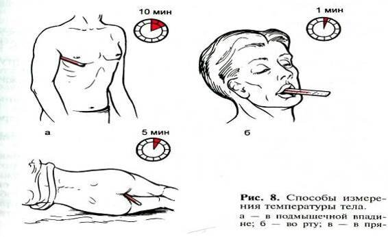 Ртутный градусник. Несмотря на современные гаджеты и быстрые способы измерения температуры, ртутный градусник остается самым достоверным измерительным прибором. Это его главный плюс. Кроме этого, ртутный градусник стоит недорого в отличие от своих электронных аналогов. Существенным недостатком ртутного градусника считается его хрупкость. При падении или встряхивании градусник может разбиться. Мало того, что повреждается сам прибор, наружу вытекает токсическое вещество – ртуть. В этом случае нужно убрать ее остатки, следуя особым правилам. Еще один недостаток ртутного градусника – долгий процесс измерения. Это особенно ощущается, когда температуру нужно измерить ребенку. Маленькие непоседы все время крутятся и им сложно 10 минут оставаться неподвижными. Как мерить температуру аксиллярно (в подмышечной впадине). Это несложный процесс, но от его правильного выполнения зависит достоверность показателей. Встряхните градусник, чтобы ртутный столбик опустился ниже 35 градусов. Поставьте град