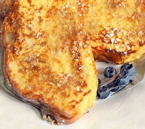 2. Кусочки хлеба или булки обмакнуть в получившуюся смесь с обеих сторон и обжарить на сковородке в сливочном масле.