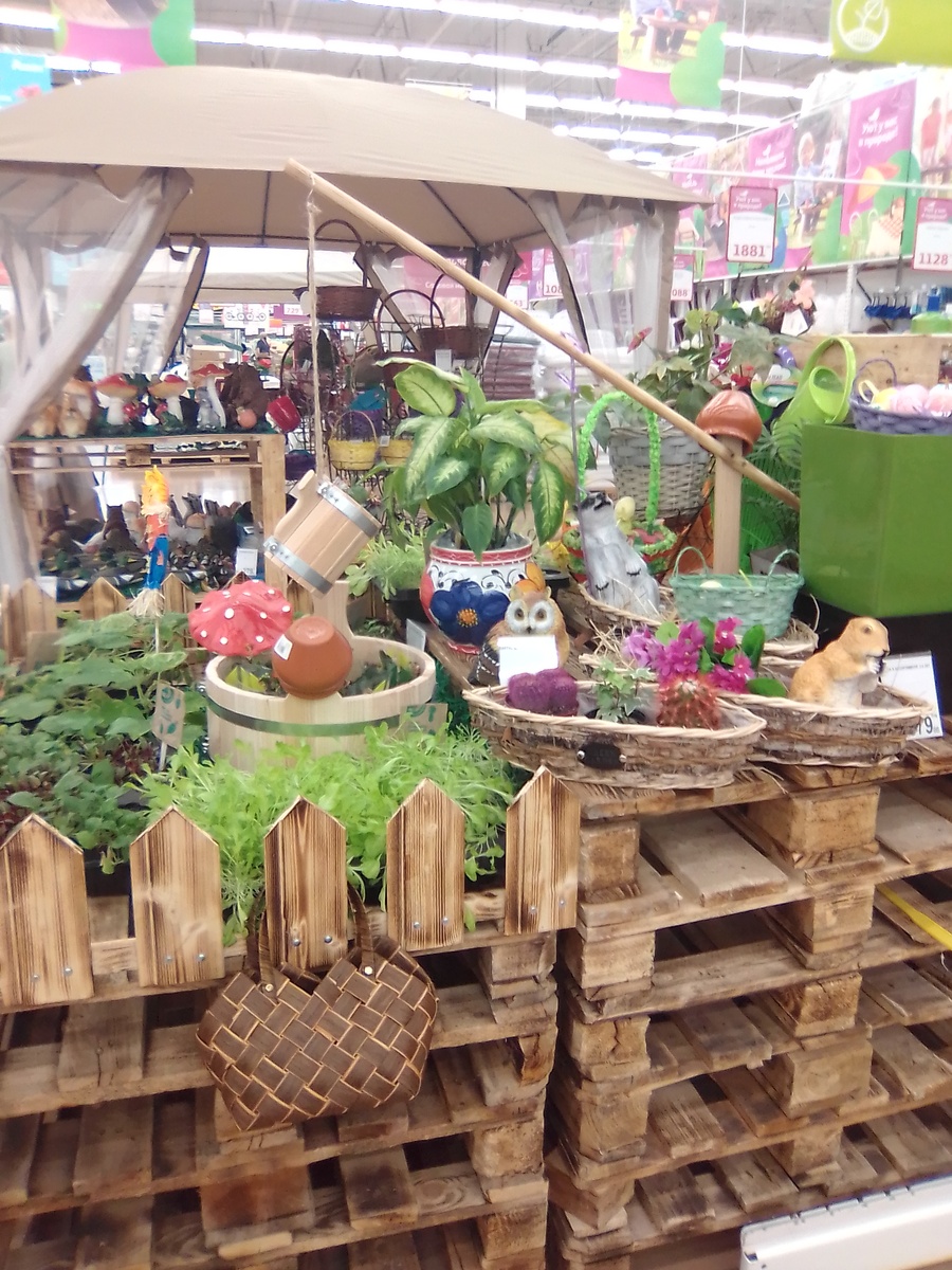 Это раньше мы на дачах только картошку сажали. да помидоры с огурчиками, а теперь, по большей части, дачки благоустраивают для загородного культурного отдыха. А помогают в этом разные товары для дачи. Вот посмотрите, какой шикарный выбор для дачников в тюменском "Ашане". Это мини-дачная композиция с собственным колодцем на дачке. Тут уж и я не устояла, и решила запечатлеть себя у такой мини-дачки, поскольку своей не имею. Ну, а вы, дачники, возьмите и у себя так же всё устройте! Вот такая красота дачная в " Ашане"! А у вас так же на дачах? Ну, как в "Ашане" написано на плакатах, " Выращивайте на здоровье!", здесь вы можете всё для этого купить! Есть и все удобрения в изобилии! Садовой химии тоже в изобилии! А ещё и садовая мебель тут есть. Вы же на дачу теперь ездите не "пахать", а отдыхать! Хотите своих внуков удивить, так вот купите им такие стульчики раскладные на дачу! А ещё и гостей можете пригласить, и удивить своей загородной дачкой. Как говорится, "Наполните дачу теплом!" И д