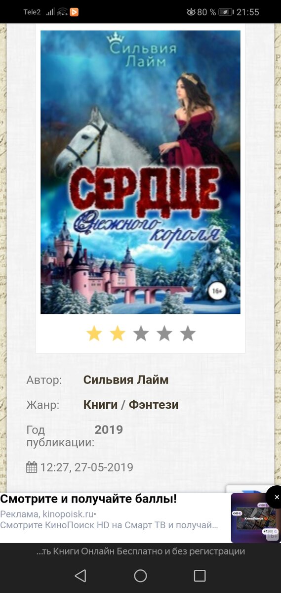 Сильвия Лайм. Отзыв - обзор Если вы не знакомы с творчеством этой чудесной писательницы, то именно с этого произведения можно открывать для себя её творчество. Сердце снежного короля рлмантическое произведение о попаданке. Но тут не найти супер мега сил, невероятного везения и прочих сопутствующих жизне улучшителей. Главная героиня становится главным козырем в заговоре, но любовь все же побеждает. Героям книги сопереживаешь, дышищь и думаешь вмнсте с ними. В этот романе нет характерных горячих сцен. Так что можно смело читать и не краснеть. А еще есть очаровательный кот, который с лёгкостью покорит сердца читателей) Данное произведение очень советую.