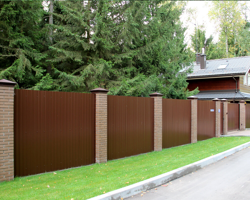 Плюсы деревянных опор: Недостатки деревянных столбов: Деревянные столбы должны быть качественными, из сухой древесины без дефектов, сколов, трещин и других повреждений. Стоят они недешево, а срок эксплуатации их при должной обработке составляет 15−20 лет. Чтобы обеспечить долговечность, их основание пропитывают антисептиками, вскрывают битумом, морилкой, обвертывают нижнюю часть гидроизоляцией. Для пропитки используют раствор из медного купороса. Учитывая стоимость дерева, а также затраты на его постоянный уход, мы не рекомендуем устанавливать деревянные столбы для заборов фасадной части дома или ограждение нежилых территорий.