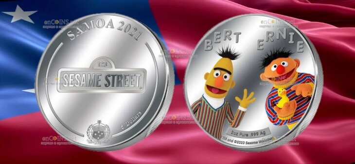 По заказу Республики Самоа была выпущена монета 5 доларов Берт и Эрни.