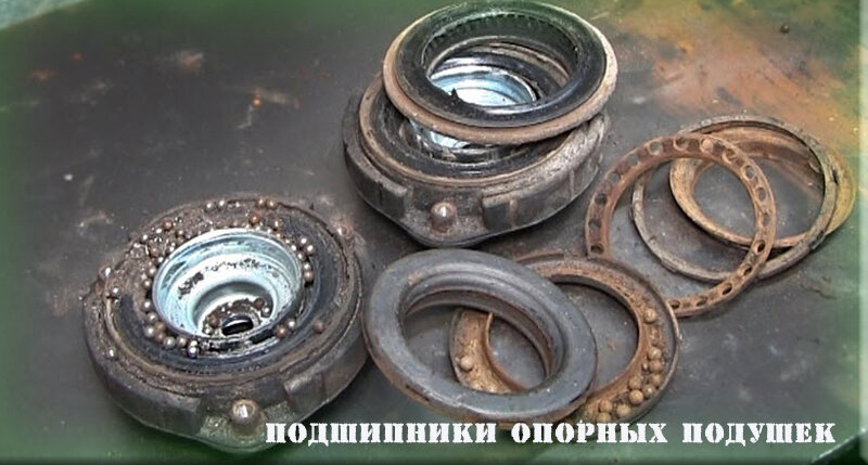 Знакома ли вам такая ситуация? Вы поворачиваете руль своего автомобиля на месте и слышите там скрипы, либо какие-то характерные щелчки непосредственно, от передней ходовой. На ходу, наблюдаете подобное: едет автомобиль и он поворачивая руль иногда возникают щелчки или скрип. Я с этим сталкивался и есть мне что вам сказать по этому поводу. Сразу вам скажу – это все подшипники опорных подушек. Если стойки амортизатора упирается в стакан, а между амортизаторная стойкой и стаканом непосредственно подушка опорная, следовательно в ней, есть опорный подшипник .И вот эти опорные подшипники (иногда из-за своего низкого качества или за плохой смазки завода, плюс если еще туда вода попадает) начинают немножко, непосредственно шарики ржаветь и начинают подклинивать, например, при повороте получается, что не может нормально войти в поворот. Ведь пружина тянет и получается его натягивать на определенный момент,и получается что он как бы простреливать, тем самым, выходят эти звуки такие неприятные.