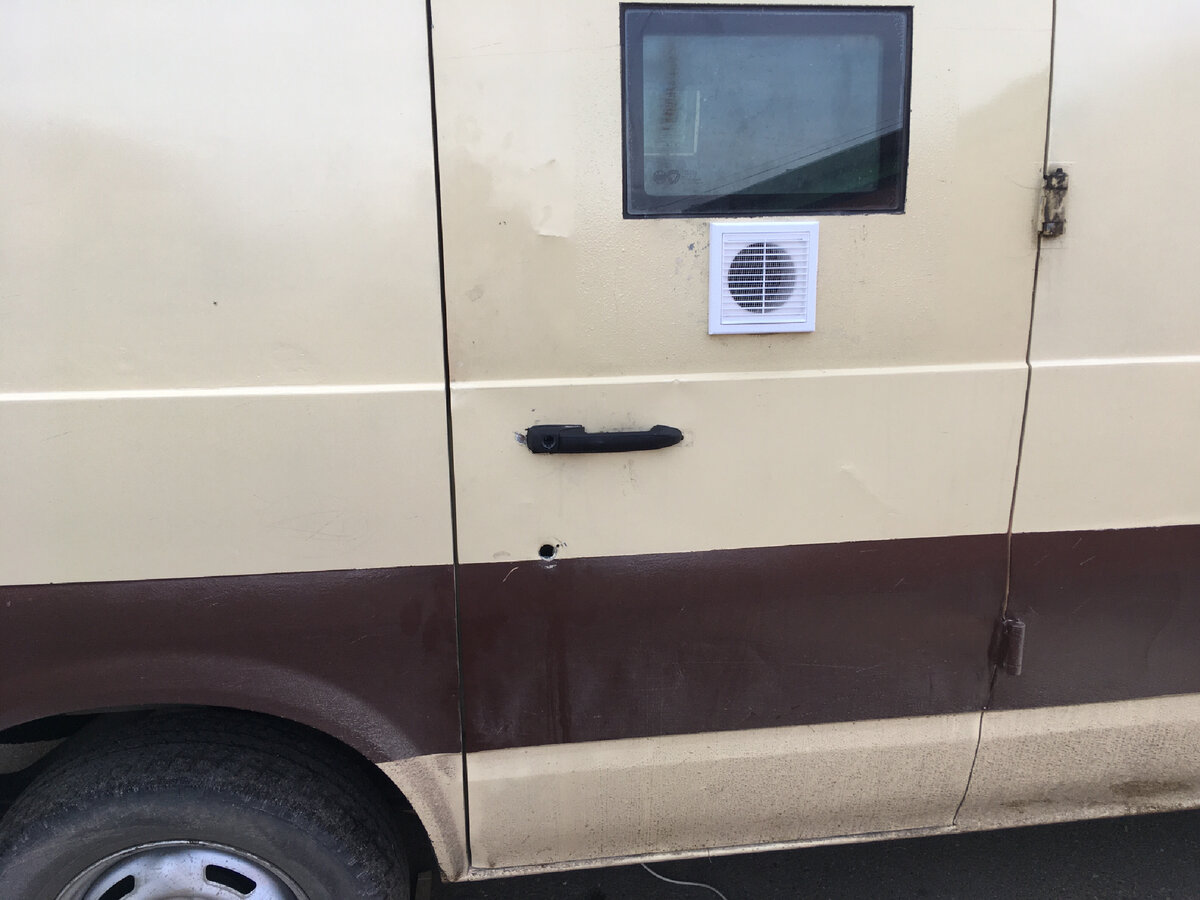 Здравствуйте друзья, многие наверное уже знают, что мы строим автодом на базе бывшего броневика Ford Transit, который 7 лет трудился не зная горя в банке, а потом попал в наши руки. Так вот к чему это я? Броню с него срезали, убрали все спец средства и теперь наша задача превратить его в гражданский автомобиль! Проблема в том, что иногда это не так просто. К примеру наша боковая дверь…изначально на форде, она сдвижная и проблем с ней нет. Но тут ее полностью переделала фирма - имяМ (кстати марка у меня именно такая) и дверь стала распашная! Раньше к инкассаторов стоял электрозамок и дверь открывалась только изнутри, что нас само собой не устраивает. Поэтому мы решили делать замок. Ручку мы слава богу сделали, сначала взяли от 9ки но в итоге встала ручка от шеви нивы! Скрестили ее с родным замком, функция которого- защелкивать дверь на петлю, и вроде открытие двери работает. Гораздо хуже с запиранием. Это конечно лютый колхоз но я ничего лучше не придумал как вставить офисный штифт с