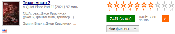 "Тихое место 2" - очень нужное именно сейчас кино. Это крепкий представитель жанра с продуманным сюжетом, отличными актерскими работами и визуалом. Да, здесь не так много новаторства, есть недоработки, но он снят с любовью и истинным вниманием к деталям, чего вполне достаточно, чтобы вернуть народ в кинотеатры и поубавить доходы стриминговых сервисов.
