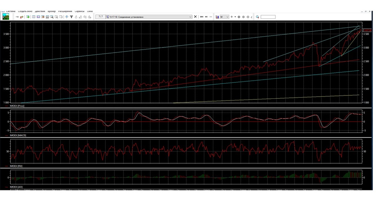 Давайте посмотрим на движения индекса Мосбиржа на основании технического и фундаментального анализа, как показывает технический анализ на долгосрочных графиках: недельном и месячном. Индекс Мосбиржа находится в растущем коридоре 2900-3750. В настоящие время медленно двигается возле линии сопротивления, но при этом не переходит линию сопротивления. Если до середины июня получится пройти уровень 3540-3570, тогда появляется возможность в июне перейти на понижающие направление с попыткой выйти на уровни 3300-3400, все будет зависеть, как будет растянут процесс просадки во времени. Если резко будем понижать уровень или плавный заход на уровни 3300-3400, при резкой просадке, можем легко не заметить поддержку на уровне 3300-3400 и скатиться на дно растущего коридора. Такой исход возможен, если политики не договорятся между собой и создадут вооруженный конфликт, индекс Мосбиржа может уйти на самое дно на уровень 2000 года или еще ниже. Такой сценарий маловероятен, скорее всего данная просадка