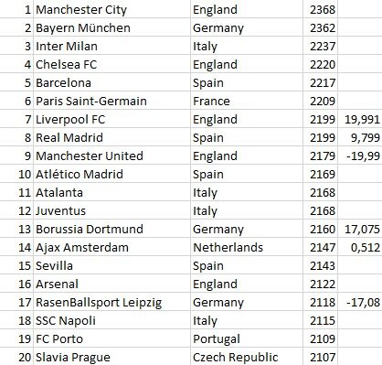 Рейтинг футбольных команд мира ELO по состоянию на 14.05.2021 (в рейтинге высшие лиги 98 стран, добавлено 2 страны)