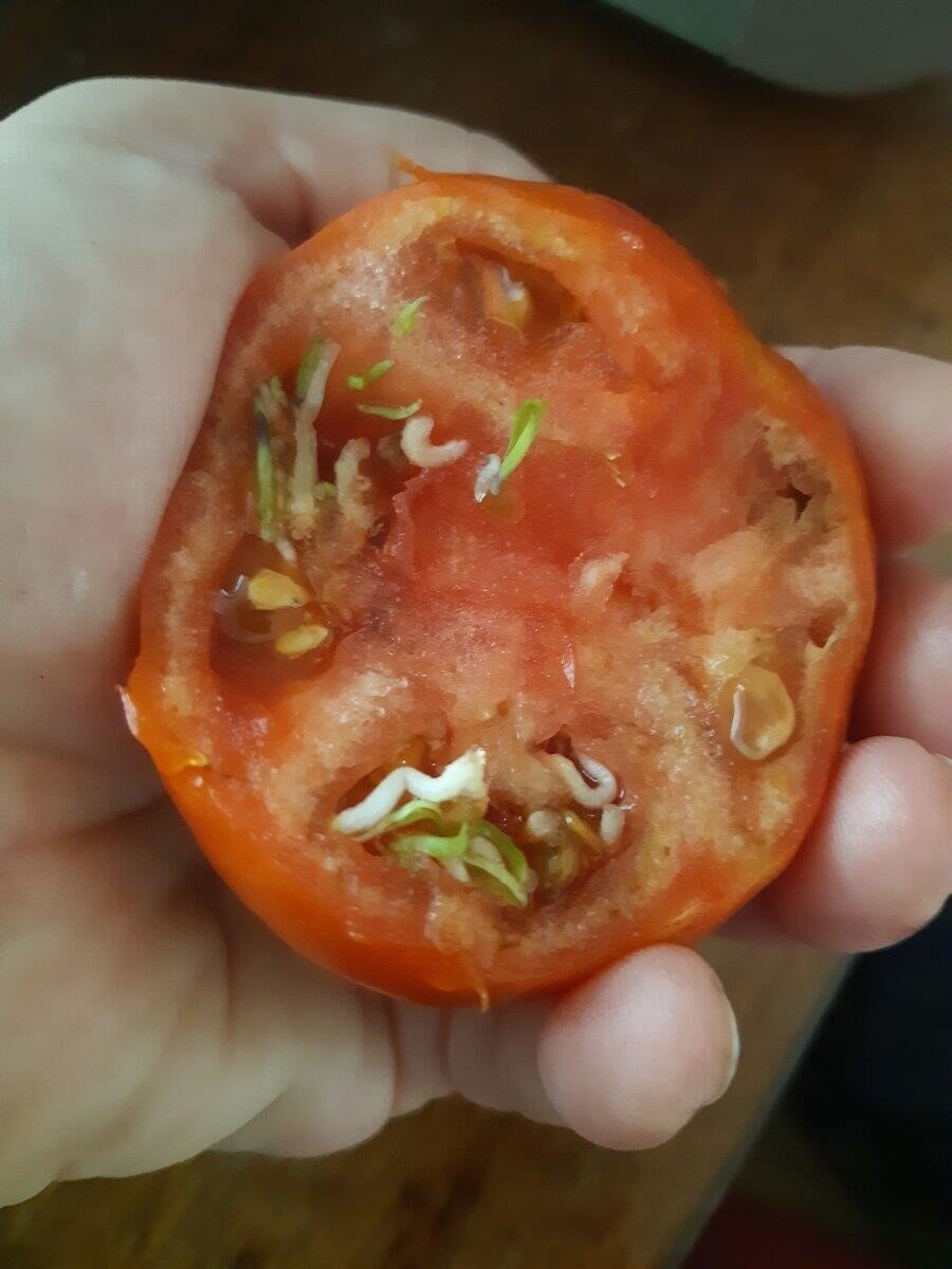 Разрезаю помидор — а там червячки! Присмотрелась — а это ростки :)!