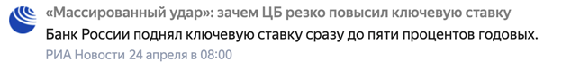 До 5,0% с 4,25% ее повысили совсем недавно: сначала в конце марта, потом в конце апреля. До этого с 2018 года значение ключевой ставки только снижалось.