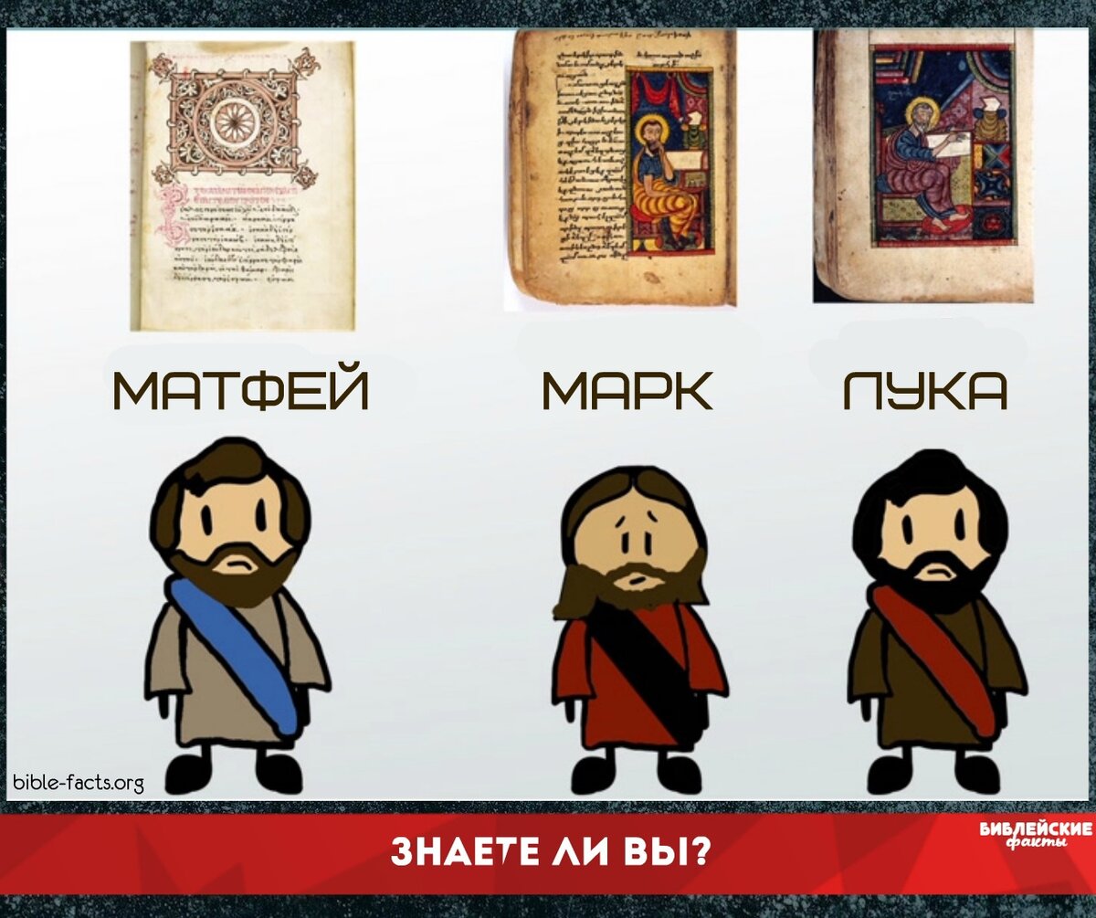 📖 Знаете ли вы? 📗 - Евангелия от Матфея, Марка, Луки называют синоптическими, так как по описываемым в них событиям они достаточно сильно совпадают. 📗 - С древнейших времен многократно делались попытки свести четыре или хотя бы три Евангелия в одно целое, в единое повествование. 📗 - Первую такую попытку осуществил еще на заре христианства Татиан. Татиановское Евангелие, соединившее четыре рассказа в одном, использовалось, но не вошло в практику Церкви. Последнюю же подобную попытку сделал киевский священник Леонид Лутковский. Он соединил Евангелия от Матфея, Марка и Луки в одно, а к ним приложил Евангелие от Иоанна как отличающееся. 📗 - Работа его была опубликована «Литературной газетой», но не пришлась по вкусу читателям. Во второй раз ее никто издавать не стал. По той, видимо, причине, что первые три евангелиста, не говоря уже об Иоанне, очень не похожи друг на друга. ► Больше интересных Библейских Фактов ► Библейские факты сайт