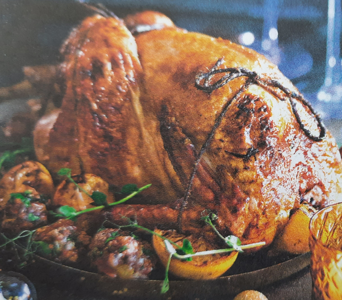 Здравствуйте дорогие друзья, сегодня снова хотел бы с вами поделиться очередным шедевром кулинарии. Надеюсь вам очень понравится и вы захотите готовить это снова. Вам понадобится: 1 индейка весом 3-4 кг 50 г сливочного масла 3-4 лавровых листа Для начинки: 25 г сливочного масла 1 луковица 75 г фиников 75 г ржаного хлеба 350 г свиного фарша 1 небольшое яблоко 1 пучок петрушки соль, молотый черный перец. 1. Ржаной хлеб нарежьте кубиками. На сливочном масле обжарьте до мягкости мелко нарезанный лук. Когда лук немного остынет, добавьте мелко нарезанные финики, фарш, натертое на крупной терке яблоко и нарезанную петрушку. Посолите и поперчите. 2. Разогрейте духовку до 200 градусов. Вымойте индейку, обсушите и плотно нафаршируйте. Закрепите край зубочистками. Уложите индейку на противень, натрите кожу сливочным маслом, посолите и поперчите. 3. Поставьте индейку в духовку на 20 минут, а затем убавьте нагрев до 180 градусов и готовьте ещё 3-3,5 ч, периодически заливая птицу соком, образующимся