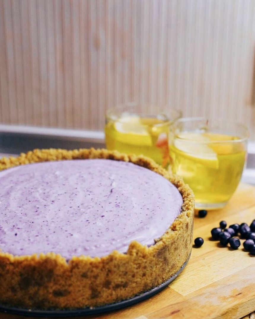 Крем: свежая Черника, рикотта, сливки, 2 ст ложки сахара - все аккуратно смешать и взбить.