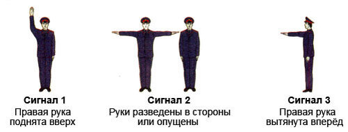 При остальных сигналах необходимо придерживаться общего принципа: движение запрещено на грудь и на спину регулировщика.