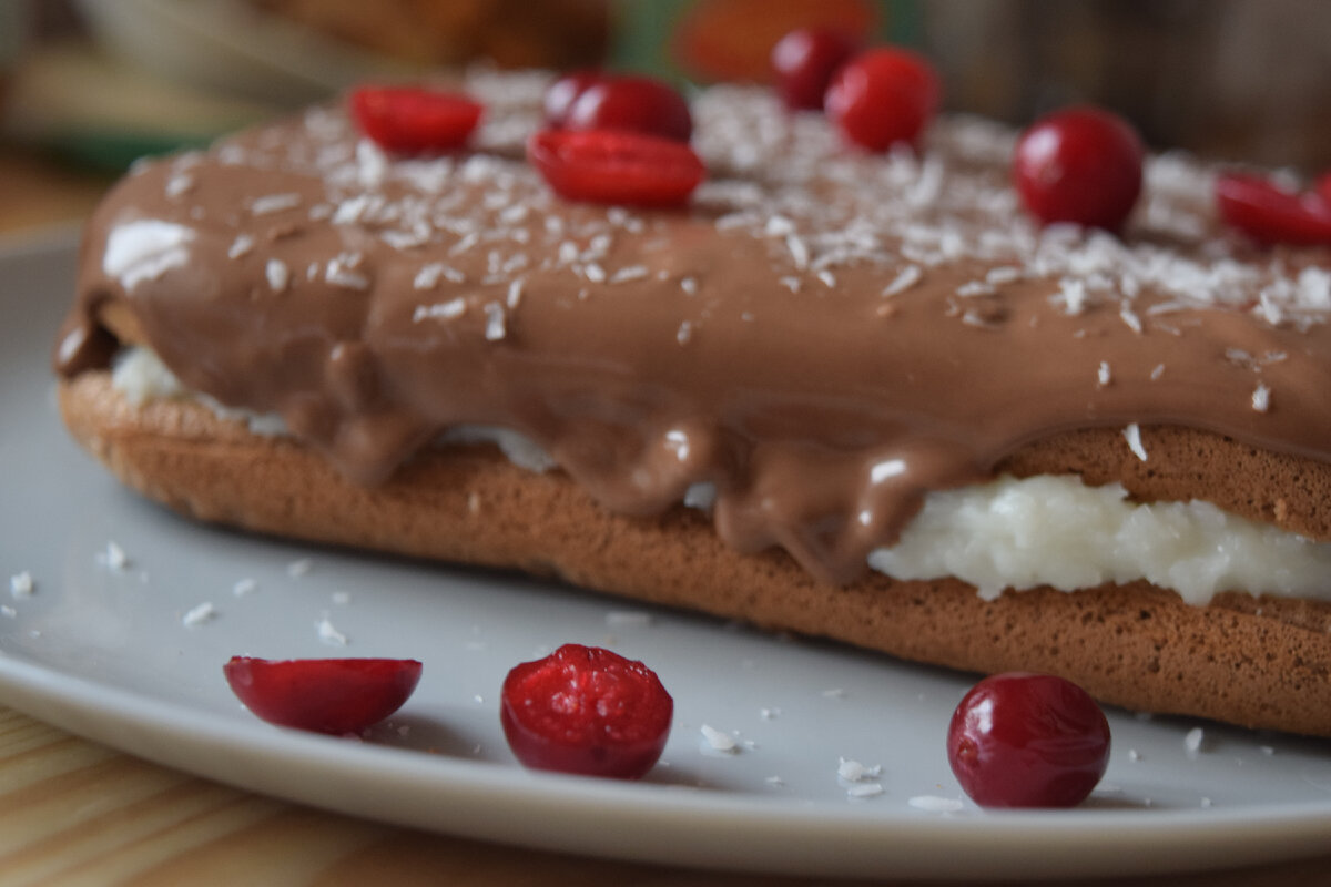 Здравствуйте, дорогие подписчики и гости канала! Сегодня предлагаю рецепт воздушного десерта к чаю. Мне он нравится тем, что не содержит муку и получается очень легкий, а также просто готовится, не занимает много времени. Список ингредиентов смотрите внизу Процесс приготовления: Вначале готовим тесто: желтки отделяем от белков. Белки взбиваем до устойчивых пиков. В желтки всыпаем крахмал, какао и сахар. Тщательно размешиваем. Постепенно выкладываем к смеси желтков взбитые белки и аккуратно перемешиваем. Дно формы для запекания застилаем пергаментом, стенки смазываем сливочным маслом. Выливаем тесто и сразу ставим выпекаться в разогретую до 180 градусов духовку на 10-15 минут. Готовим крем: в сотейник высыпаем крахмал, вливаем немного молока, тщательно размешиваем, чтобы не было комочков и вливаем оставшееся молоко. Всыпаем кокосовую стружку, сахар и хорошо размешиваем. Ставим на слабый огонь и варим, при постоянном помешивании, несколько минут до загустения. Остывший корж разрезаем по