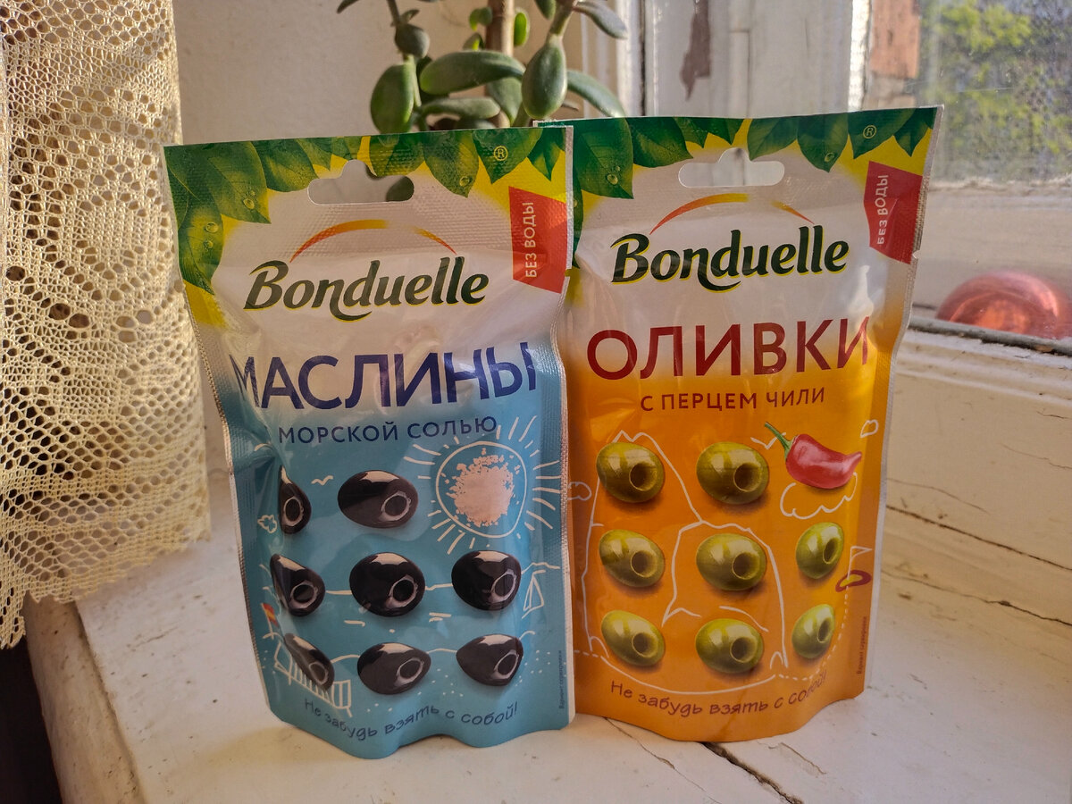 Для меня было шоком увидеть в ФиксПрайсе оливки и маслины от "Bonduelle". Обычно, в этой сети большое везение увидеть в наличие что-то от премиального производителя. Но Фикс меняется в лучшую сторону, а с ним и улучшается торговая матрица магазинов. Давайте уже поговорим об оливках. На полке мне попалось 3 вида оливок и маслин. 1. Маслины с морской солью 2. Оливки с лимоном 3. Оливки с Чили перцем На пробу решил взять первый и третий варианты. Что меня очень порадовало, так это то, что забракованы оливки без рассола, при этом качество самого продукта никак от этого не пострадало. Состав очень прост: Оливки, оливковое масло, соль, перец Чили молотый, лимонная кислота, тимьян. У маслин примерно все одинаково. Радует то, что за 27.50 вы получаете 70 грамм чистого продукта, без жидкости и прочего ненужного содержимого. Притом в ЖЦ банке любых оливок или маслин другого произволителя, масса продукта около 90 грамм, но и ценник там переваливает за 60, а то и 80 рублей. Что же внутр