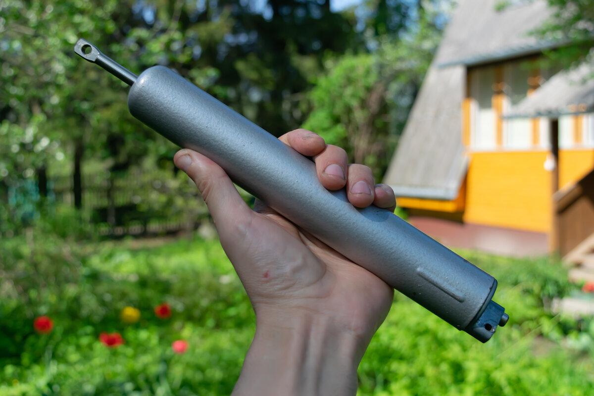 Здравствуйте, дорогие читатели! :-) Нашёл я у себя на даче в моём волшебном сарае старый пневматический доводчик дверей. Пролежал он у меня лет 30, так что произведён он либо в конце 80-х, либо в начале 90-х годов. Думаю, зря что ли лежит? Надо приспособить. Калитка у меня в свободном состоянии открывается настежь (столб со временем чуть наклонился вперёд), и чтобы не забегали собаки, её приходится каждый раз закрывать на щеколду. Поэтому я подумал, а почему бы не поставить доводчик на калитку? Доводчик пневматический, вроде как всесезонный. Рабочий ход 130 мм. Регулировка пневматики происходит винтом на торце: Калитка у меня самая обыкновенная, ничего особенного. Четверть века ей уж, как и забору: Решил сильно не заморачиваться, и поступил довольно брутально. На третью от петель штакетину снаружи, капая слюной от удовольствия, я смачно прикрутил предварительно покрашенный в зелёный цвет (чтобы не выделялся) увесистый металлический уголок 50 мм толщиной 6 мм. Прикрутил его так, чтобы