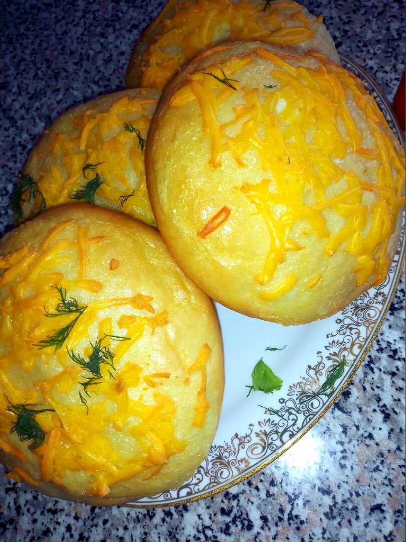 Конечно это не ПП, но очень вкусно! Пуховый мякиш и хрустящая корочка. Готовятся эти лепешки довольно просто, а результат впечатляет! Ингредиенты есть практически у каждой хозяйки в холодильнике. Ингредиенты: В теплом молоке растворить дрожжи, сахар, соль. Добавить 2 ст. л. майонеза и перемешать. Добавить просеянную муку. Замесить тесто. Миску смазать растительным масло, положить тесто и затянуть пищевой пленкой или накрыть полотенцем. Оставить для подъема. Сейчас на улице очень жарко и уже через 30 минут тесто выглядело вот так. Подошедшее тесто обмять. Разделить на четыре равные части. Каждую собрать с краев к центру и подкатать в шарик. Переложить швом вниз. Накрыть пленкой и оставить на 10 минут. Каждый шарик теста слегка раскатать скалкой и переложить на противень, застеленный бумагой для выпечки. Сыр натереть на крупной терке. Смазать лепешки майонезом, примерно по 0,5 ст. л. на каждую лепешку и посыпать сыром. Даем постоять в теплом месте около 10