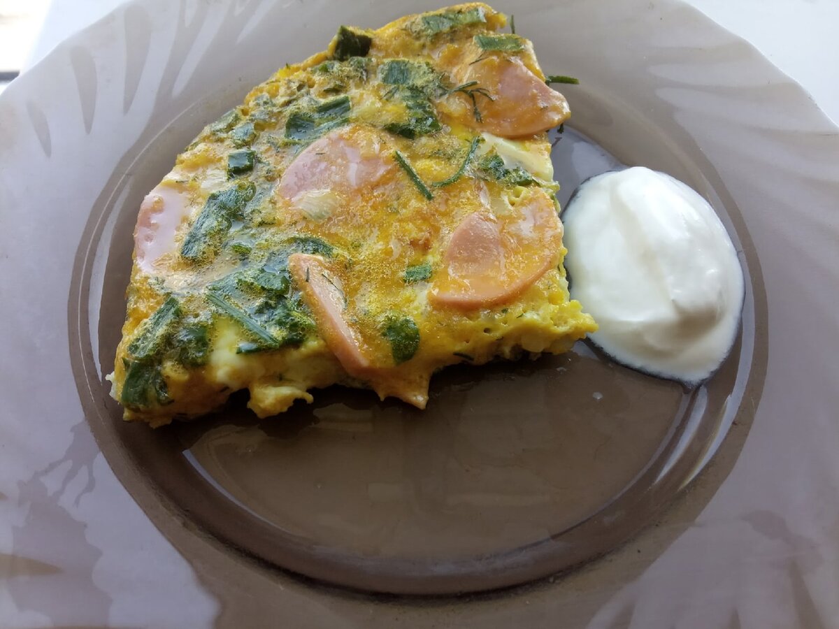 Завтрак неотъемлемая часть ежедневного рациона и яичница отличный вариант завтрака. Видов приготовления яиц множество, сейчас я вам расскажу о рецепте яичнице-болтунье, которую готовила сегодня. Набор продуктов такой: яйца, колбаса, репчатый лук и зелень. В первую очередь обжариваем лук. Когда лук чуть поджарится, добавляем тонко порезанную колбасу. Пока поджаривается колбаска, разбиваем в плошку яйца, солим и добавляем зелень. Слега взбиваем венчиком и заливаем жарящиеся колбасу и лук. Я крышкой не закрываю, ставлю на тихий огонь и оставляю на плите до готовности. На общее приготовление уйдет всего минут 15, а сытный и в то же время не тяжелый завтрак уже готов. Приятного аппетита!!!