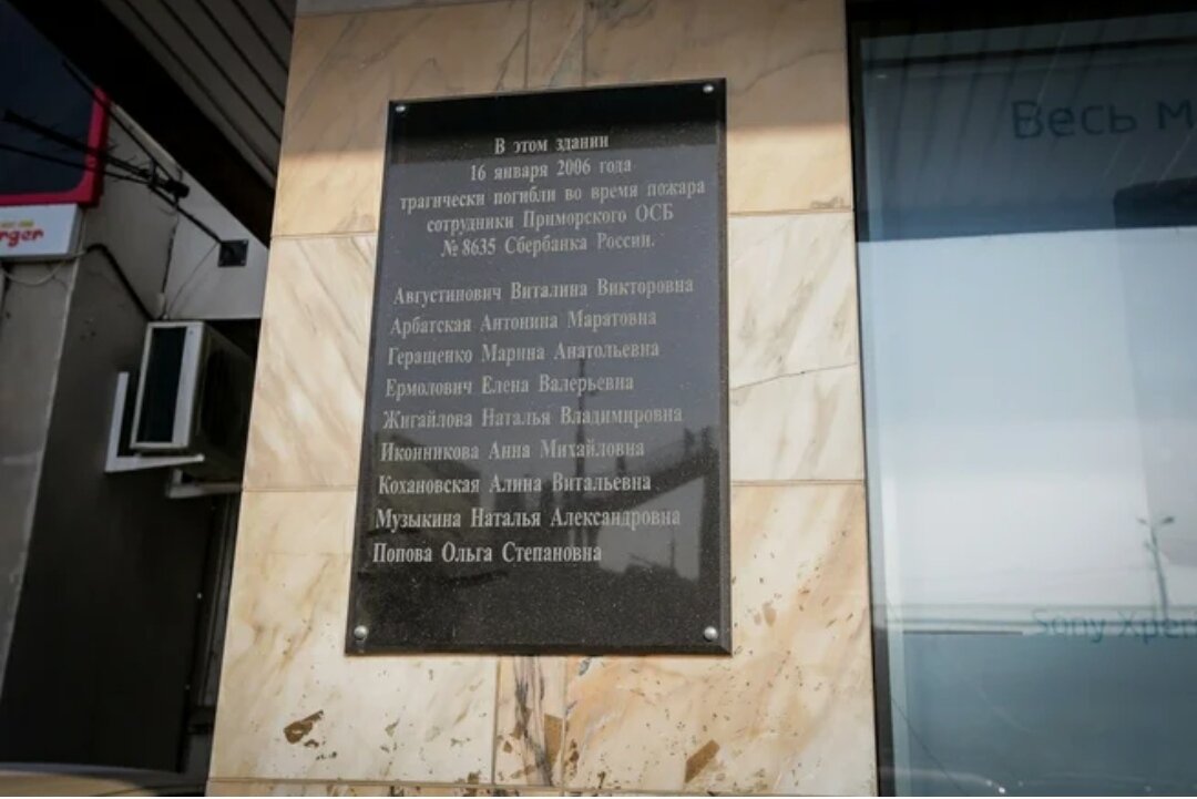 Имена девяти сотрудниц Сбербанка, погибших в страшной трагедии 2006 года, высечены на памятной доске, которая установлена на входе в здание "Промстройниипроекта". Ежегодно 16 января сюда приходят десятки людей с цветами