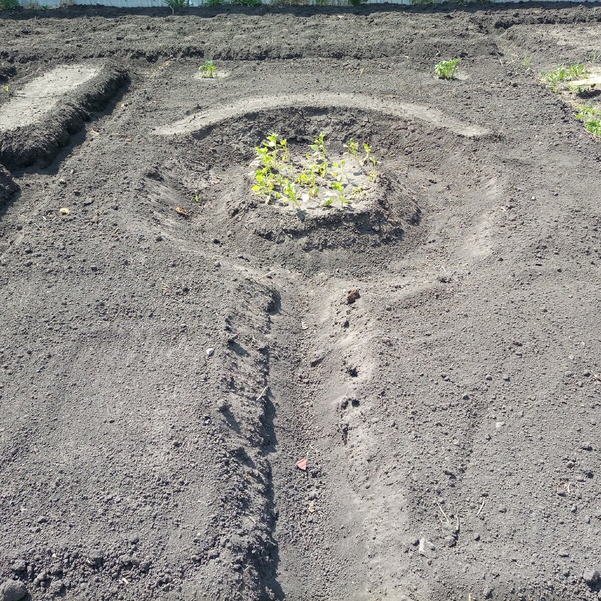 Я уже начала делать цветник. Оформила круглую клумбу, посадила в нее астры, которые свекровь дала. По обе стороны посадила цветочки - золотой шар. И вот, думаю люпин то уже сеять нужно. Пошла, оформила полукруг и посеяла семена.
