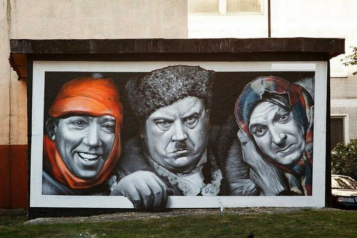 Так, на одной из центральных улиц города по адресу Островского, 33 можно увидеть героев полюбившегося многим поколениям россиян фильма "Операция Ы и другие приключения Шурика",