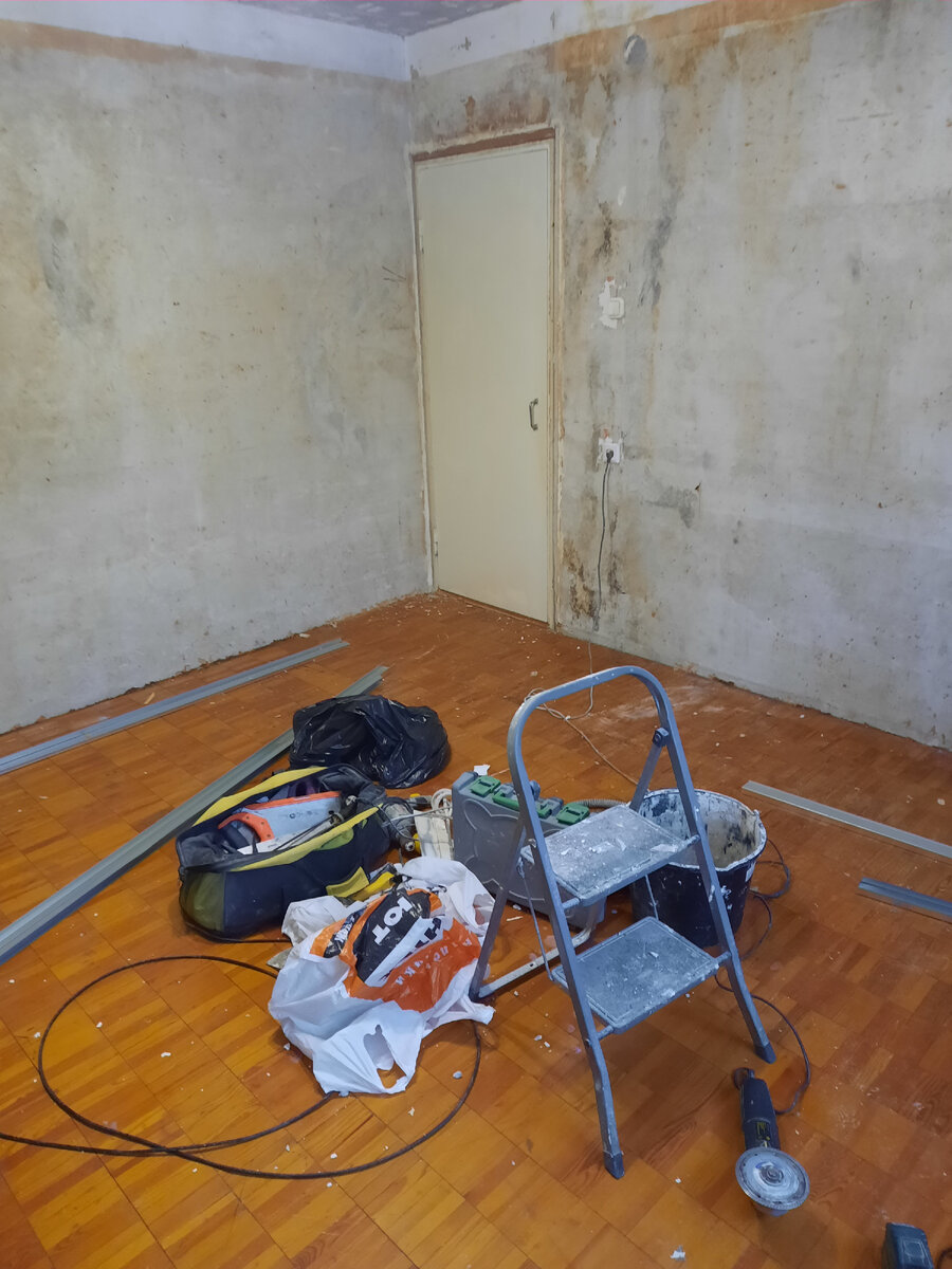 В статье пойдет речь, об очередном ремонте жилой комнаты. При общении с заказчиком и осмотре помещения, стало понятно, что нужен бюджетный, но современный ремонт. Задачи которые перед нами стояли: Первым делом приступили к монтажу короба, под радиатор. Список всех материалов, приложу в конце статьи. Направляющий профиль 27х28 прикрутили к полу и подоконнику, а уже в него вставляется стоечный профиль 60х28. Каркас был сделан так, чтобы оставалась две ниши под радиаторные решетки. После, все обшили гипсокартоном и заделали швы с саморезами гипсовой штукатуркой. Все дефекты и неровности стен, заштукатурили, предварительно стены прогрунтовали грунтовкой глубокого проникновения. Затем, зашпаклевали стены финишной шпаклевкой в один слой. После высыхания шпаклевки, поверхноссть стен ошкурили и загрунтовали Список материалов: Обои поклеили, виниловые на флизелиновой основе, тип рефленые. По качеству, обои достаточно неплохие, но, если случайно заденешь, можно легко повредить поверхность.