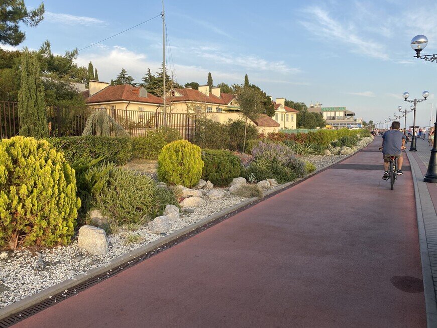 В прошлом Имеретинка – не была объектом жилой застройки, многое здесь выстроено с нуля и вся инфраструктура подчинена туризму. Здесь большие отели, нет поездов возле моря, красивая набережная. Прибрежная зона отличается от большинства пляжей Сочи. Здесь нет волнорезов. Пляжи широкие, галечные, обустроенные. Но надо отметить, что галька очень крупная. И глубоко становится почти сразу у берега. Есть пляжи, которые принадлежат отелям, но везде можно арендовать шезлонги за деньги или лежать бесплатно на своем полотенце. В Имеретинской бухте много площадей для прогулок. Но чтобы успеть увидеть все как можно быстрее. Можно взять в прокат электросамокаты или велосипеды. Как с поминутной тарификацией так и с часовой. Первое куда стоит отправиться это конечно Олимпийский парк. Построеный к олимпиаде 2014. Если приехать сюда ближе к вечеру, можно увидеть завораживающее шоу поющих фонтанов.