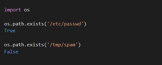 Вам нужно выяснить, существует ли файл или каталог. Используйте os.path, чтобы проверить, существует ли файл или каталог. Вы можете выполнить дополнительные тесты, чтобы проверить тип файла. Эти проверки возвращают False, если файл не существует: Если вам нужно получить метаданные (например, размер или дату изменения файла), это тоже можно сделать с помощью модуля os.path: Проверка файлов с помощью os.path становится очень простой операцией. Единственное, о чем стоит помнить, так это о разрешениях, особенно при операциях получения метаданных. TCP Сервер на Python Декораторы в Python Основы Python ООП SkillFactory