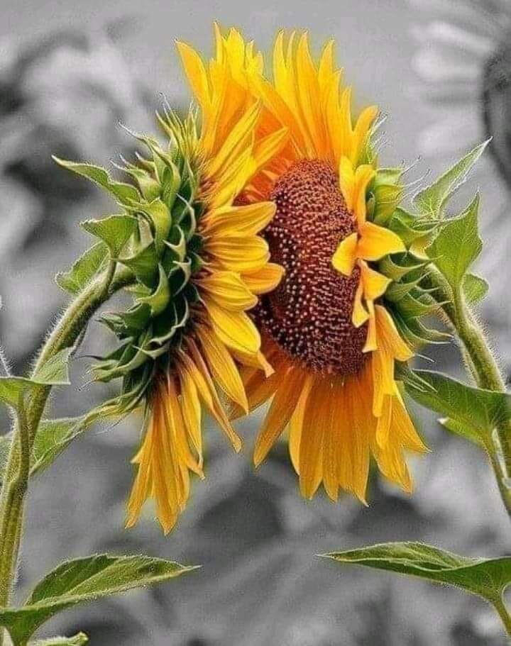В пасмурные и дождливые дни подсолнухи поворачиваются друг к другу, чтобы поделиться своей энергией. Представьте, если бы мы применили это в нашей жизни... Природа нас многому учит, Делитесь добротой и улыбками, Она к вам вернётся!