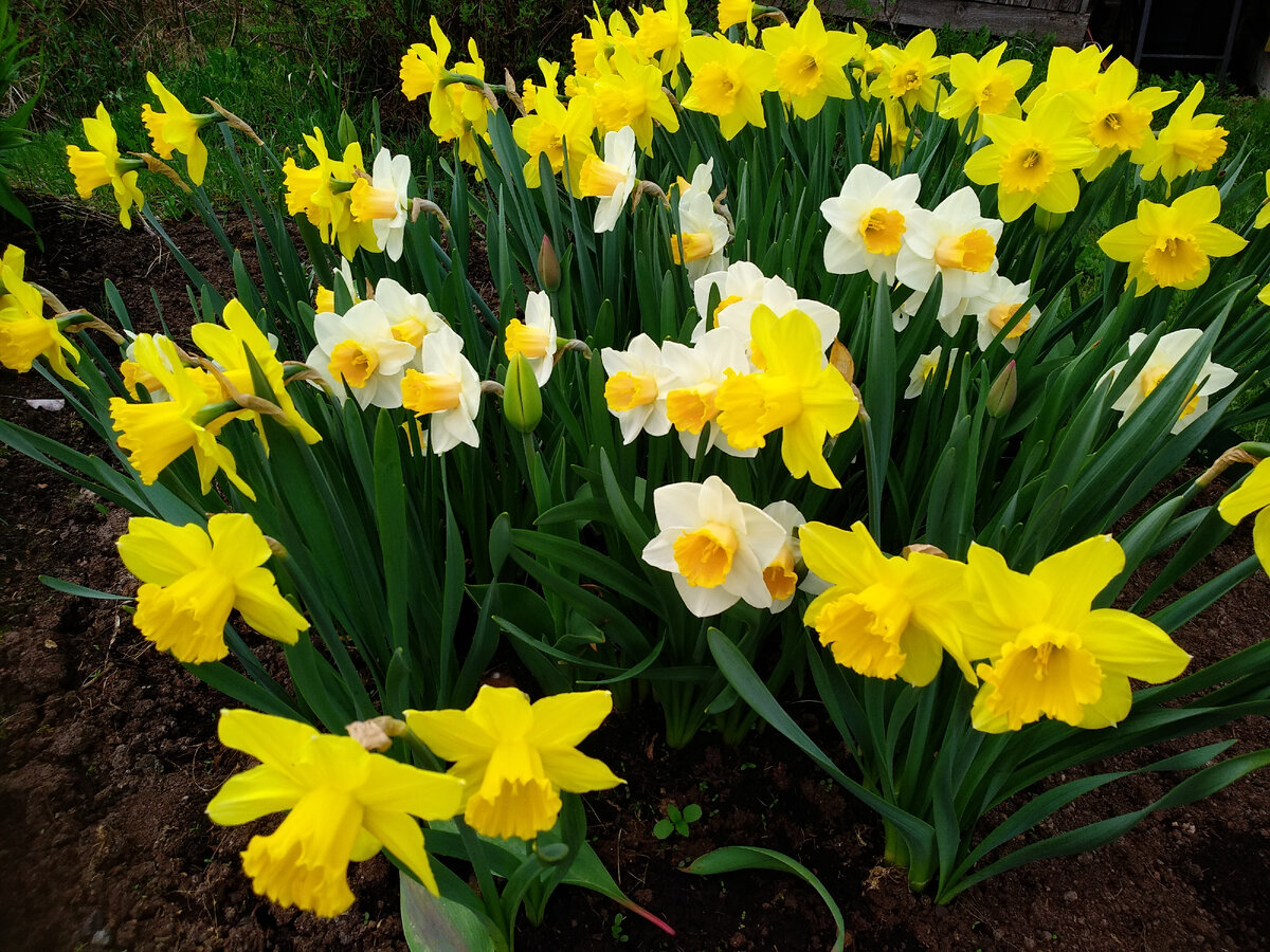 Пока детский садик не ушел в отпуск, дача у нас в формате #дача выходного дня Всю прошлую неделю стояла жара. В городе было хорошо за 20 градусов, в области тоже не отставало. Половину знакомых накрыло насморком - спасибо берёзам и прочим цветущим. Около дома в городе цветёт спирея вроде бы серая. Она же на даче только набирает цвет, зато расцвели нарциссы, тюльпаны. Осенью от жадности прихватила в гипермаркете пакетик с желтыми тюльпанами. Нарциссы рассадила к хостам под забор. Немного грубо, но, думаю, переживут. Цветоносы срезала, пусть восстанавливаются. Им еще с хостами за питание конкурировать. Основную клумбу надо рассаживать. Там столько молодых и нарциссов и тюльпанов. Всё оооочень глубоко уже ушло и выкопать что-то одно очень сложно. А туда в планах еще и гладиолусы. Посмотрю как себя будут чувствовать нарциссы после пересадки к хостам и, может, перекопаю и эти. В прошлом году на участок кто-то принёс жёлудь и он внезапно пророс. С газона его пересадили на край клумбы, огоро