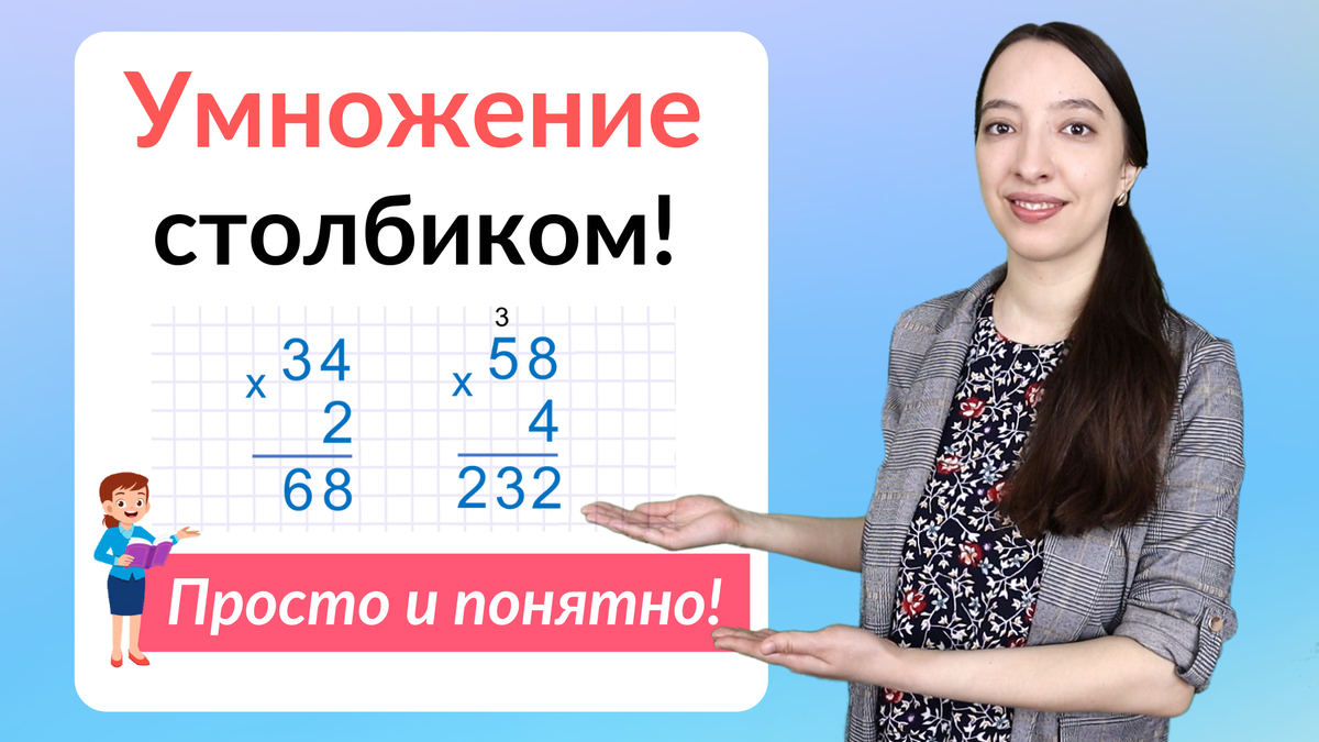 Здравствуйте, дорогие родители! Как научить ребенка умножать столбиком? Это одна из самых сложных тем на уроках математики в начальных классах, и постоянно встречается в самостоятельных и контрольных работах. Давайте вместе научимся объяснять детям умножение столбиком.
