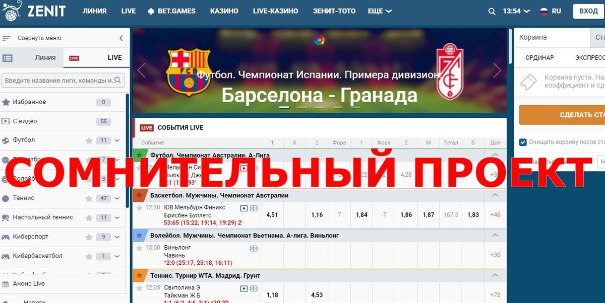 Zenitbet.com – букмекерская контора, сотрудничество с которой мы считаем крайне нежелательным. Здесь есть проблемы, и очень серьезные. Многие профильные эксперты и интернет-издания справедливо заносят БК Зенит в категорию потенциально мошеннических проектов. Нельзя сказать, что это банальный лохотрон, но тут все сделано так, чтобы решать любые спорные ситуации, которые, конечно же, связаны с деньгами, исключительно в пользу администрации. Игроки здесь – это не более чем поставщики денег, и ничего вы изменить не сможете. Общие сведения