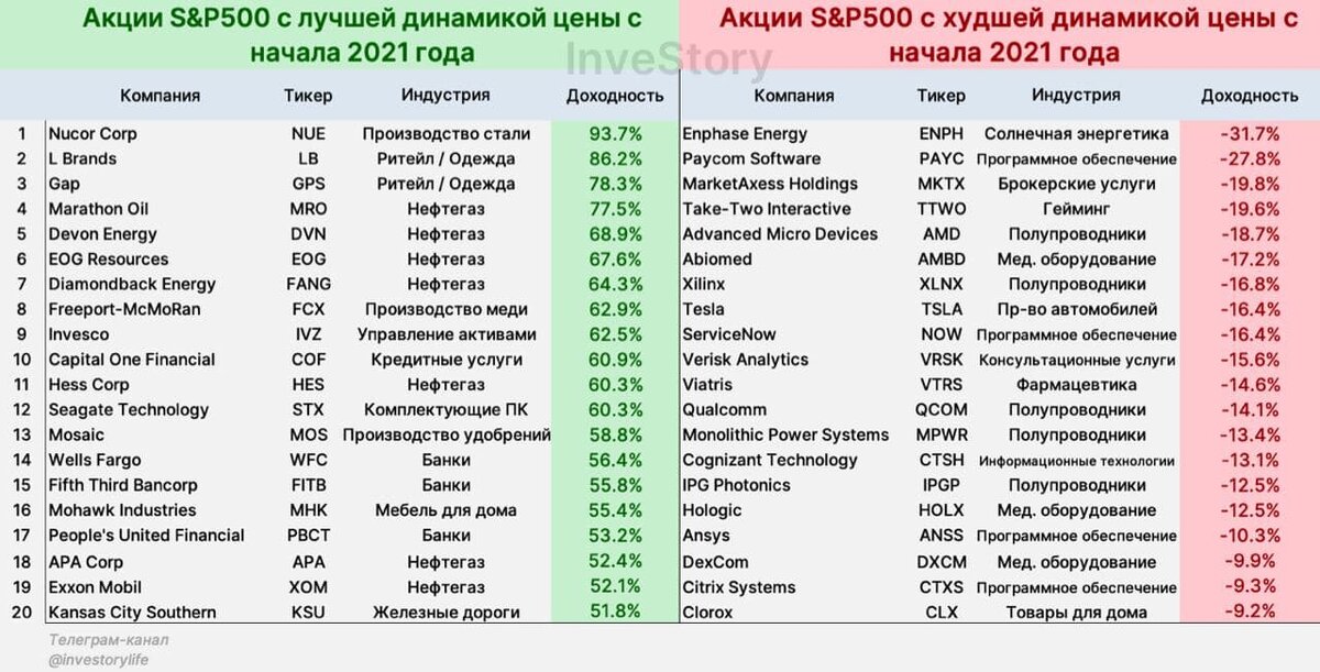 С начала года прошло уже почти пять месяцев - пора взглянуть на доходность S&P500 за этот период. Индекс прибавил +10.84%, но в этот раз рост был обеспечен отнюдь не FAANG или техами в целом, а реальным сектором экономики. Несмотря на разговоры про переход к возобновляемым источникам энергии, про "смерть" обычного ритейла и хайп вокруг крипты и финтеха, инвесторы проголосовали ногами за нефтегаз, банки и ритейл. Можно справедливо заявить, что та же крипта выросла в десятки раз за тот же период - но мы предпочитаем активы, чья цена определяется объективными трендами, а не твитами эксцентричного миллиардера. Стоит ли инвестировать в вышеперечисленные отрасли сейчас? Мы считаем, что период лёгких денег уже закончился, поэтому теперь инвестировать остаётся только в отдельные недооценённые истории. Среди таких можем отметить нефтесервисную компанию TechnipFMC (тикер: FTI), которая даже сейчас торгуется по неплохой цене. Долю финансового сектора в портфеле мы снизили, зафиксировав в апреле п