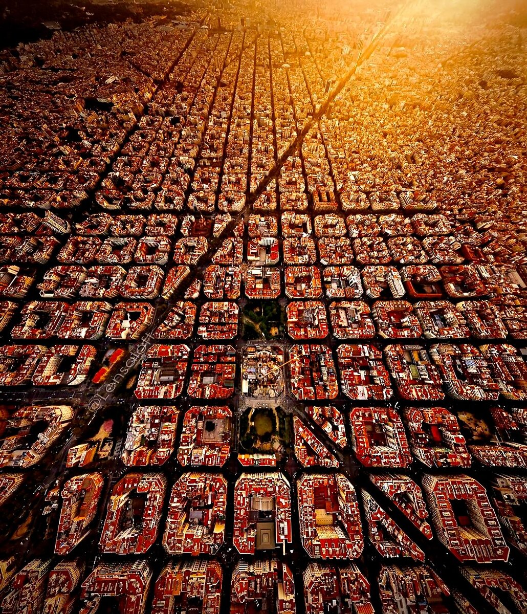 Все уже видели фотки Барселоны с птичьего полета, но когда-нибудь заинтересовывала такая планировка? А вот в Eternity задумались. История начинается с середины XIX века, когда Барселона за счёт своего населения просто выросла и стены города стали «малы». Частой проблемой густонаселенного города в те времена были эпидемии (мы-то теперь все это знаем), но когда к этой проблеме добавился экономический вопрос, ведь развитее промышленности требовало новых построек, а в старом городе не было места - было принято решение о сносе стен и расширении Барселоны. Тут мы плавно переходим к району Эшампле, что с каталонского - «расширение». Хотя... стоит упомянуть, что изначально параллельно с ломанием стены был проведён конкурс по планированию нового района, где одержал победу известный муниципальный архитектор Антонио Ровиро. По его плану, планировка Барселоны бы сейчас походила на Питерскую, где главные улицы ведут к центру города. Но Мадрид поставил своего «архитектора» Идефонса Серда. Почему арх