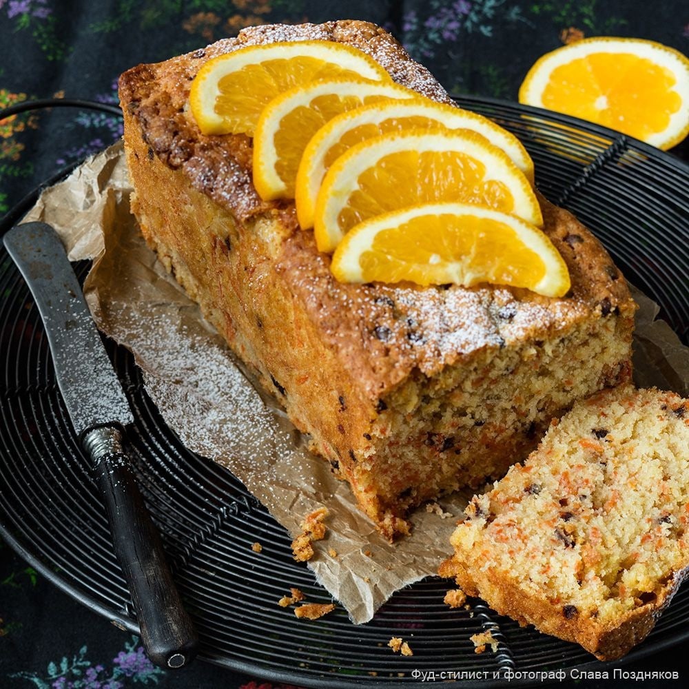Морковный кекс с апельсиновой цедрой и шоколадом. Мука пшеничная-300 г. Масло сливочное-200 г. Яйцо куриное-3 шт. Сахар-200 г Свежая морковь-2 шт. Апельсин-1 шт. Шоколад горький-50 г. Апельсин (цедра)-1 ст. л. Сахарная пудра-по вкусу Пекарский порошок-1 ч. л Сахар ванильный-1 ч. л. Способ приготовления: Очищенную морковь натрите на мелкой терке. Взбейте масло с сахаром до однородной светлой массы. Смешайте муку с пекарским порошком и добавьте к маслу. Туда же взбейте по одному яйцу и всыпьте сахар ванильный. Массу аккуратно перемешайте. Затем добавьте морковь, цедру апельсина и тертый шоколад. Смажьте форму маслом, обсыпьте мукой и выложите тесто. Выпекайте в нагретой до 180 °C духовке примерно 30 минут. Готовый кекс посыпьте сахарной пудрой и украсьте кусочками апельсина и шоколада