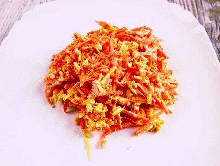 Ингредиенты: морковь - 250 г; чеснок - 2 зуб.; твердый сыр с орехами - 200 г; домашний майонез - 2-3 ст. л. Сегодня готовим очень быстрый, вкусный и простой салат с морковью и сыром. Это отличный вариант салата, когда хочется чего-то вкусного , а времени на приготовление совсем нет. Процесс приготовления салата с морковью, сыром и чесноком. Натираем на терке 250 г сырой моркови. На той же терке натираем 200 г твердого сыра с орехами. Через пресс выдавливаем 2 зубчика чеснока. Чеснок добавляем к натертой моркови. Добавляем 2-3 ст. л. майонеза. Высыпаем натертый твердый сыр. Перемешиваем и можно подавать на стол. Вот так очень просто и быстро готовится такой салат с морковью и сыром. Также такой салат запросто можно подать и на праздничный стол. Такой салат из моркови можно заправить и сметаной, или майонезом со сметаной 50 на 50. Приятного аппетита!