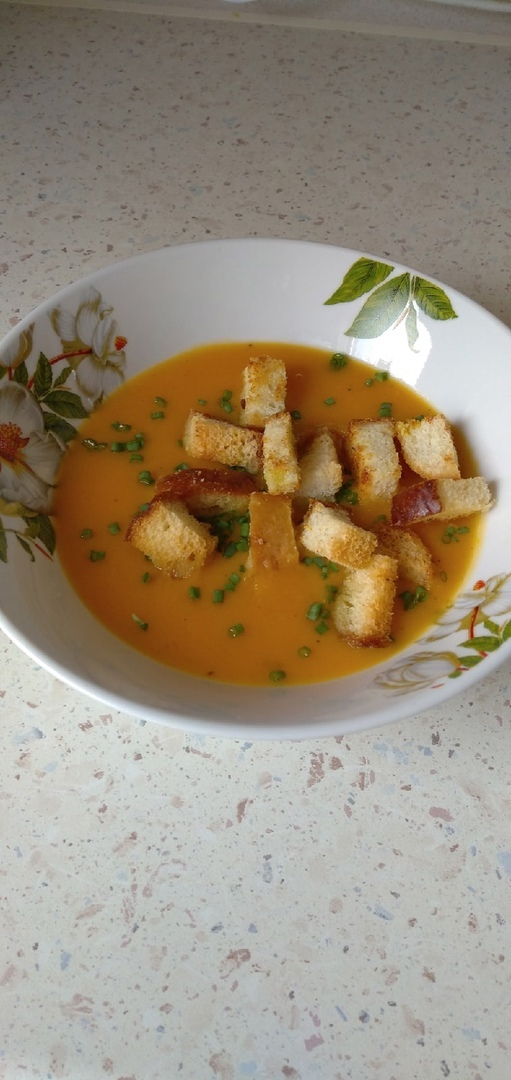 именно такое авторское название(привет Масяне) Дорогие подписчики и гости моего канала! Решила немного возобновить публикацию моих любимых рецептов. Я очень люблю тыкву. Она и полезная и цвет у нее такой позитивненький. А что я из нее готовлю? Понятное дело кашу с пшеном и рисом, сухофруктами, бывает и яблочко добавлю для кислинку. Еще самсы с начинкой из тыквы с перцем и жареным луком. Ну и супчики. А еще забыла-печень с тыквой тоже очень вкусно. Что касается этого блюда - очень нежный супец. Как всегда быстро и очень просто готовится! Это суп - пюре, если добавить сливки - будет крем-суп))