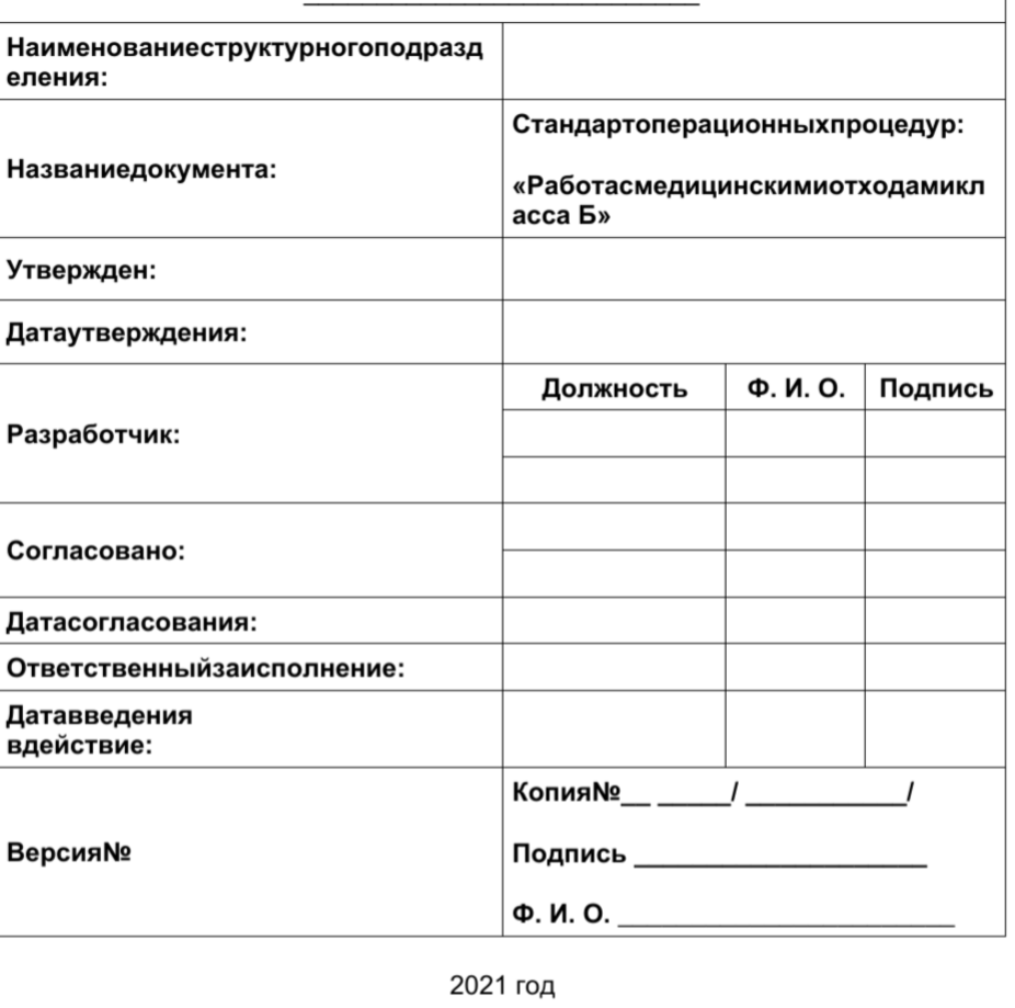 Требования СОП предназначены для применения всеми сотрудниками отделений, деятельность которых связана с обращением с отходами класса Б.